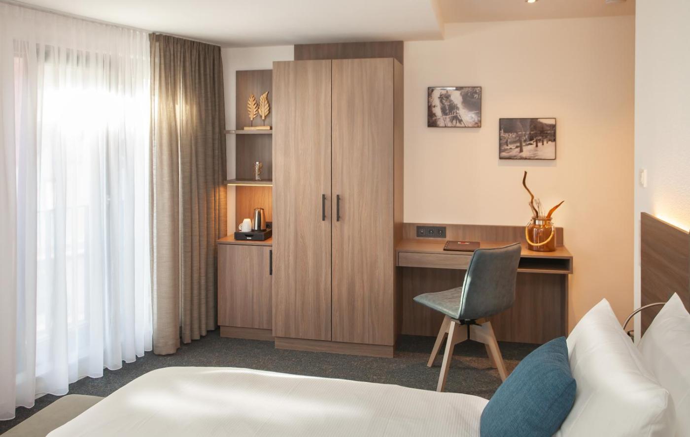 Superior Doppelzimmer. Das geräumige Doppelzimmer verfügt über Tee- und Kaffeezubehör, einen Kleiderschrank und ein eigenes Bad mit einer ebenerdigen Dusche und einem Haartrockner. Die Wohneinheit ist mit 1 Bett ausgestattet.