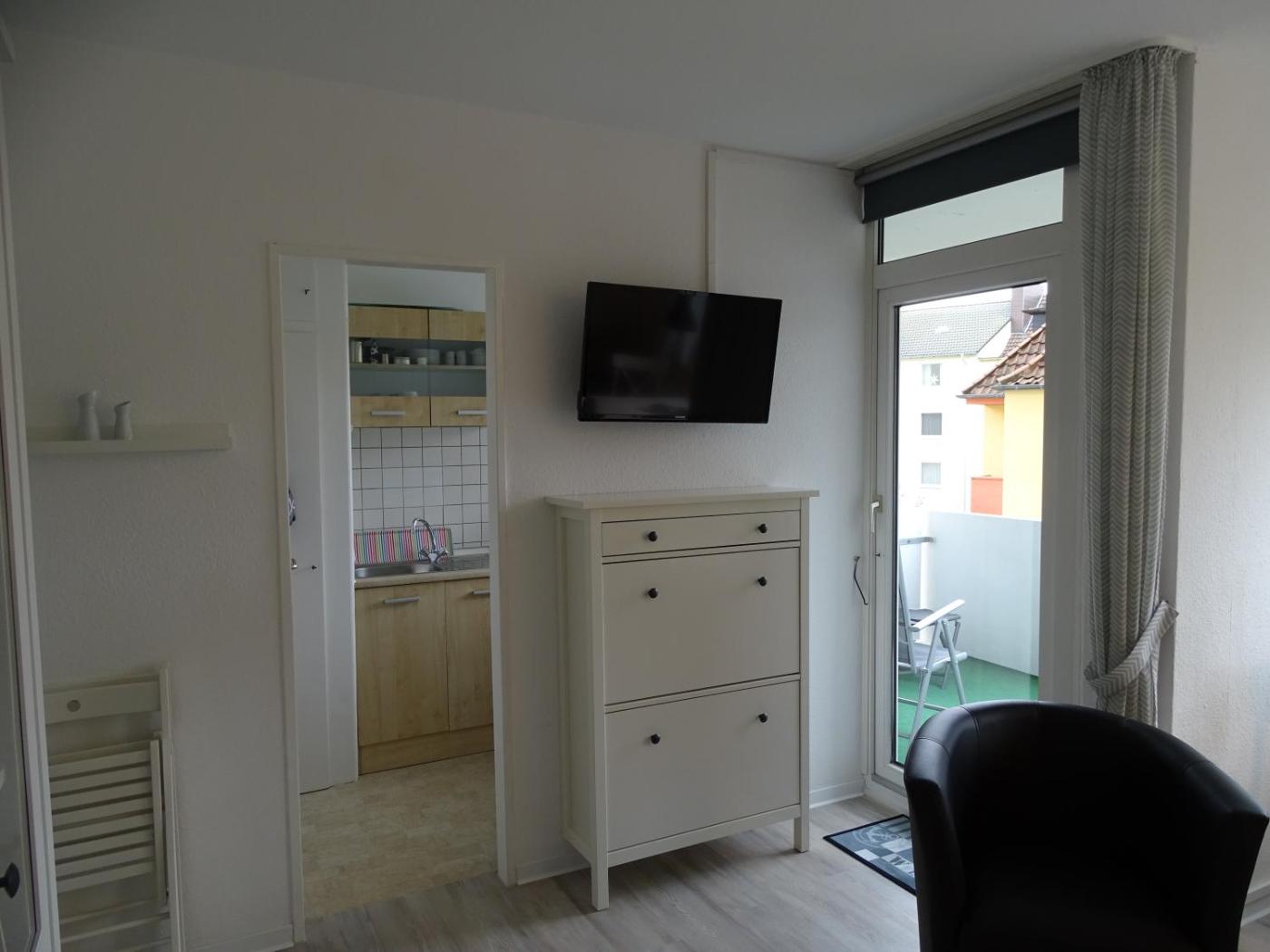 Apartment mit Balkon. Featuring a private entrance, this apartment consists of 1 living room, 1 separate bedroom and 1 bathroom with a shower and a hairdryer. Meals can be prepared in the kitchen, which is equipped with a stovetop, a refrigerator, kitchenware and an oven. This apartment features a washing machine, flat-screen TV with cable channels, garden views, as well as chocolate for guests. The unit offers 2 beds.
