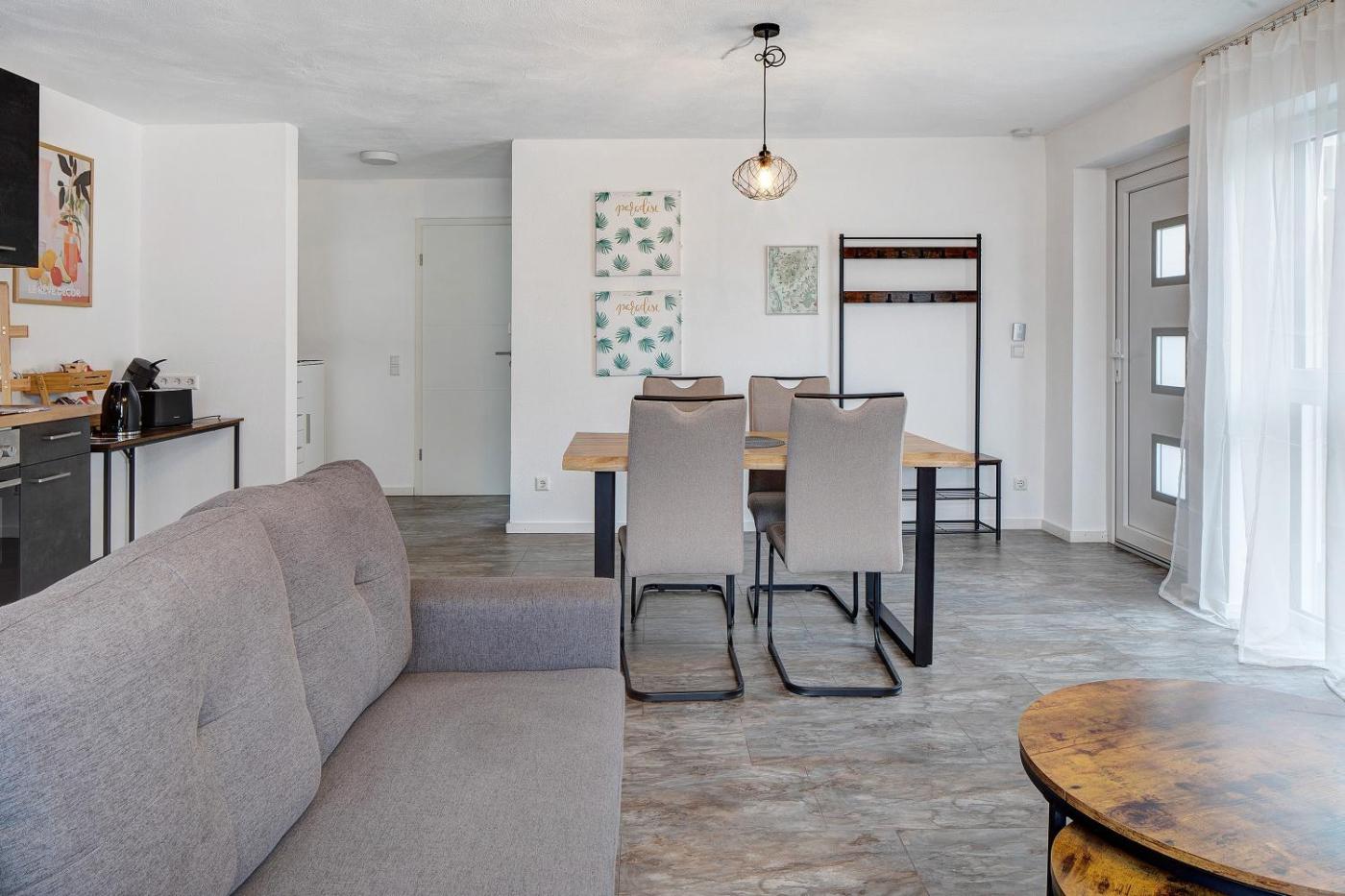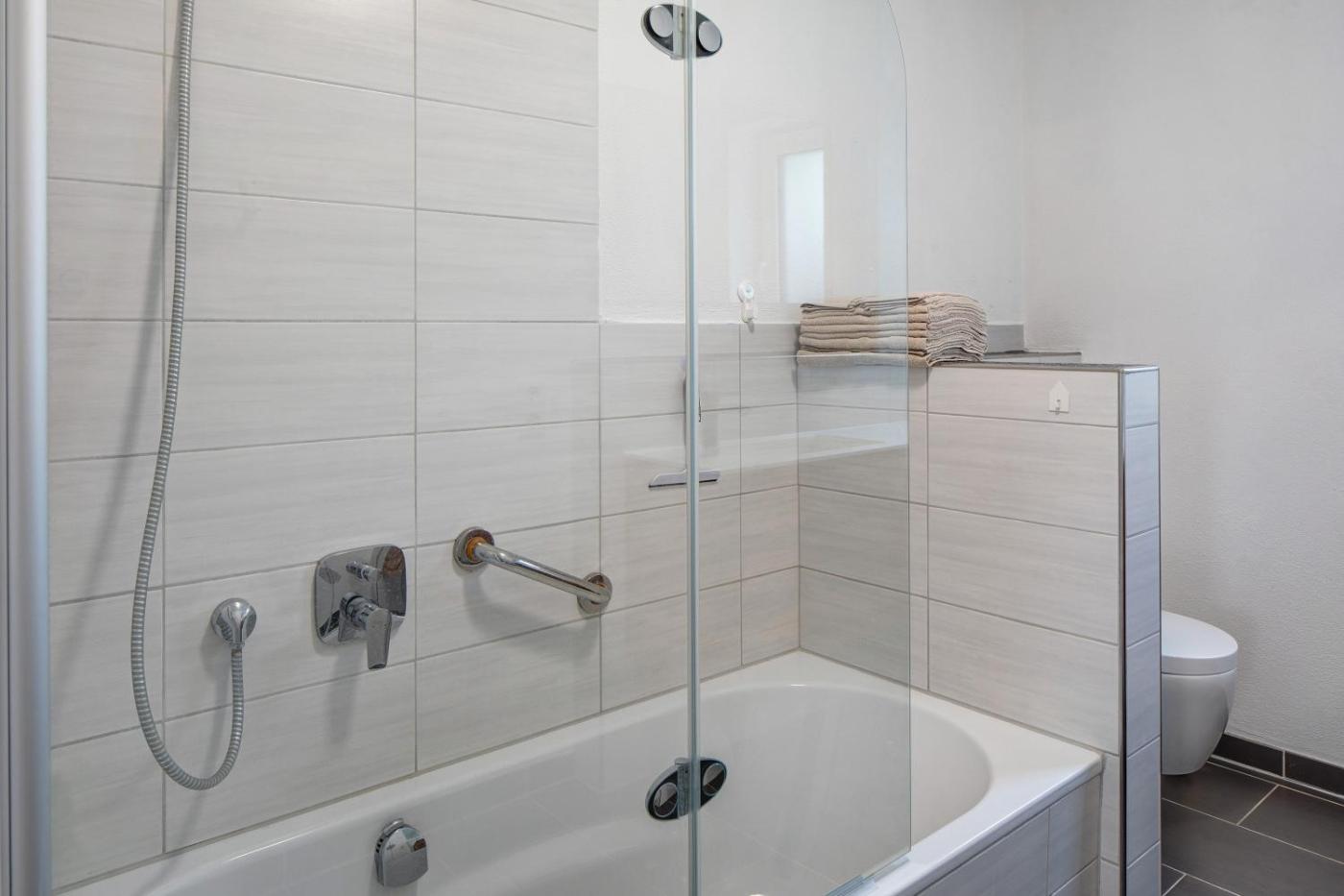 Apartment mit Terrasse. This apartment features 1 living room, 1 separate bedroom and 1 bathroom with a bath and free toiletries. The well-equipped kitchen features a dishwasher, kitchenware, an oven and a microwave. This apartment has a private entrance, a coffee machine, a TV with streaming services and a terrace. The unit has 2 beds.