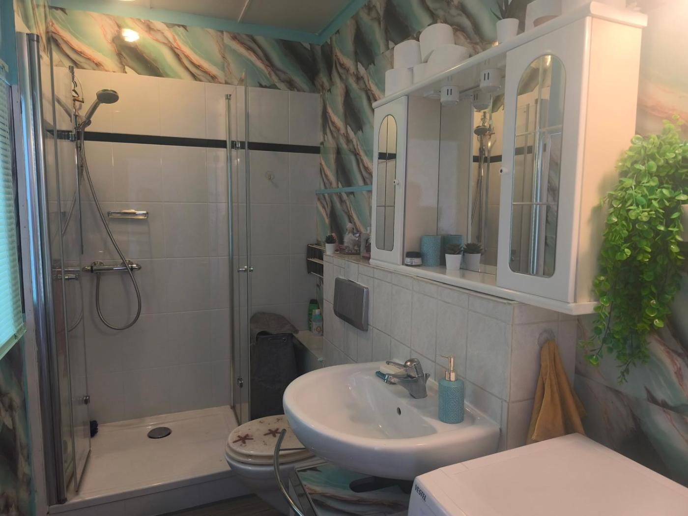 Doppelzimmer. The spacious double room features a washing machine, soundproof walls, as well as a private bathroom boasting a shower and slippers. Guests will find a stovetop, a refrigerator, a dishwasher and kitchenware in the well-equipped kitchenette. The double room also includes a barbecue. This double room has Smartphone, flat-screen TV, city views, as well as chocolate for guests. The unit has 2 beds. ;