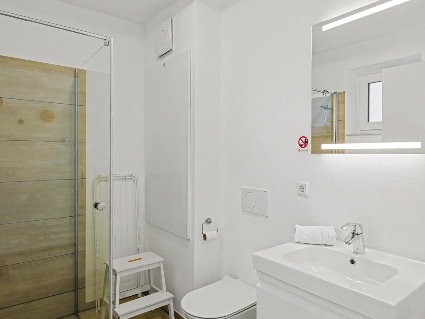 Diese Ferienwohnung bietet 2 Schlafzimmer, einen TV mit Satellitenkanälen, eine gut ausgestattete Küchenzeile mit einem Kühlschrank und einem Geschirrspüler sowie 1 Badezimmer mit einer Dusche.