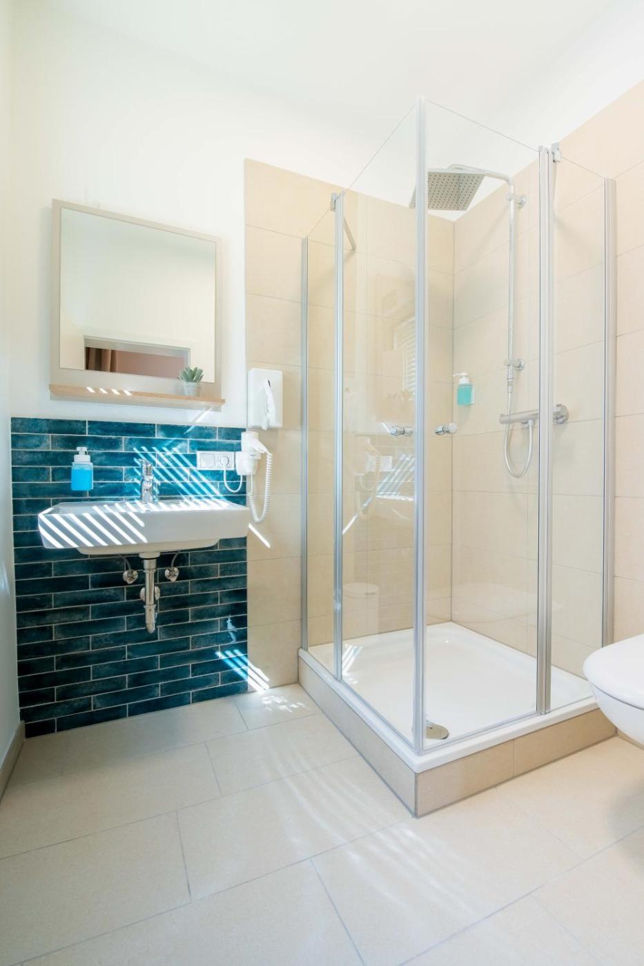 Comfort Dreibettzimmer. The triple room offers a safe deposit box, parquet floors, as well as a private bathroom featuring a shower and a hairdryer. The triple room provides a flat-screen TV with streaming services, a minibar, a tea and coffee maker, a wardrobe as well as ancourtyard view. The unit offers 2 beds.